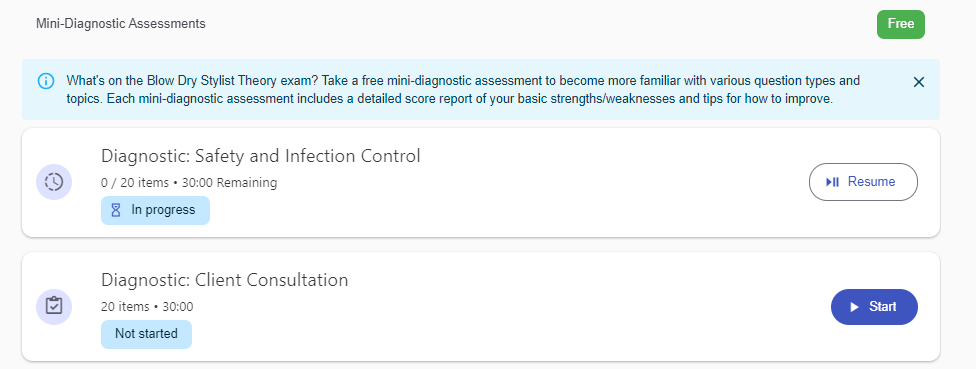 Start for free today with a complimentary mini-diagnostic and access to a free sample questions in one outline topic.