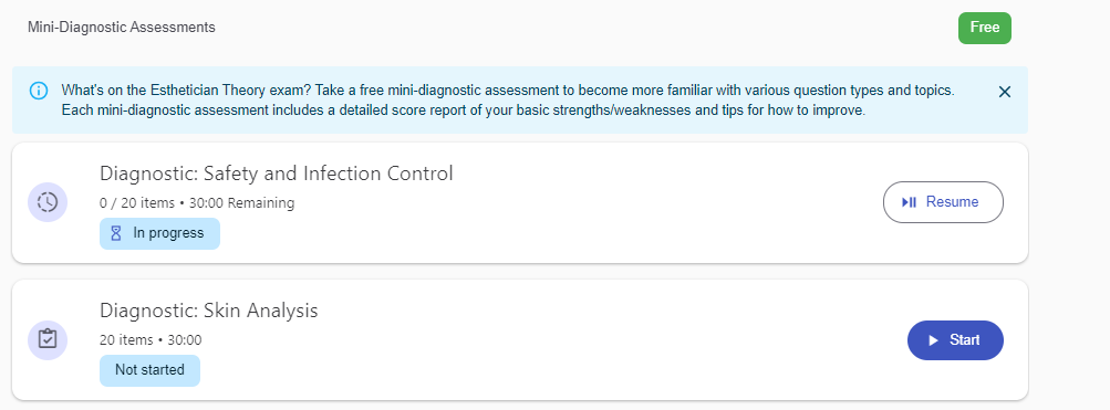 Start for free today with a complimentary mini-diagnostic and access to a free sample questions in one outline topic.