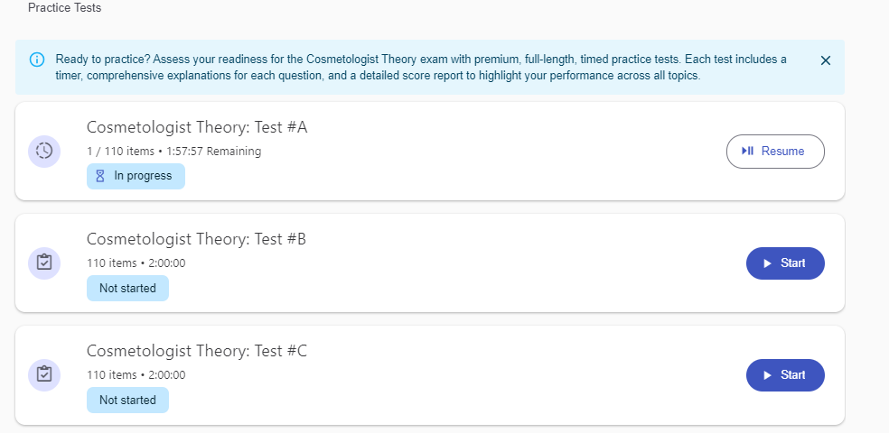 Confidently prepare for your Esthetician Theory exam with practice questions, explanations, progress tracking, and more! Brought to you by the experts from PSI.