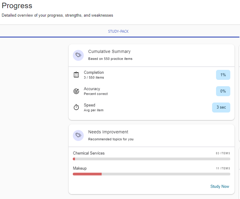 The Cosmetology Theory Study-Pack follows PSI’s national content outlines to help you advance your understanding and pinpoint where you need to improve.