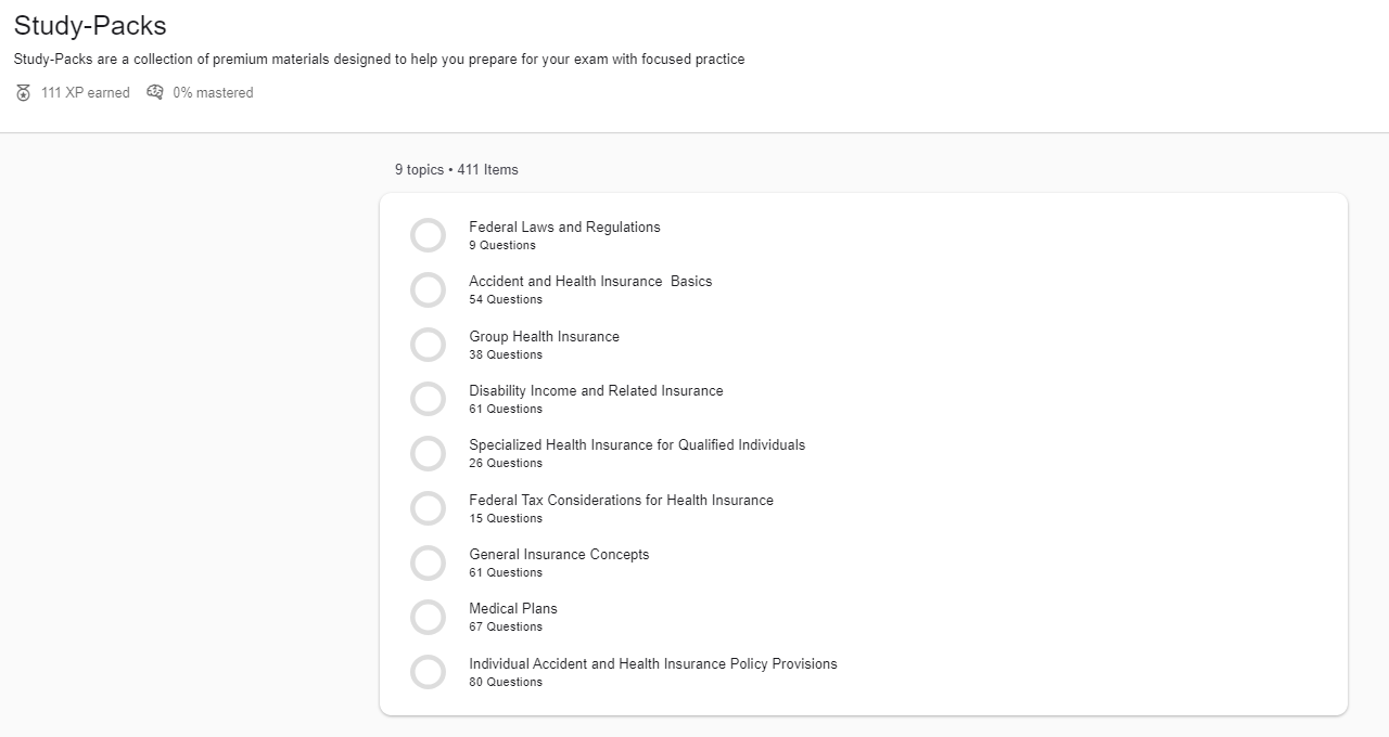 Cada suscripción del Study-Pack contiene contenido premium restringido que requiere una compra para acceder durante un periodo limitado de tiempo (por ejemplo, 90 días). Cuando este periodo expire, perderás el acceso. No hay renovación automática. Si deseas extender tu acceso (por ejemplo, si cambiaste la fecha de tu examen), puedes agregar tiempo a través de compras adicionales en la aplicación.