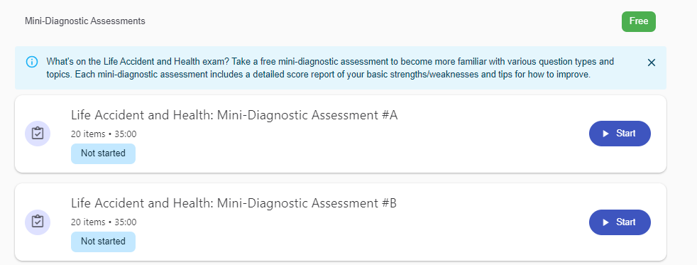 Start for free today with a complimentary mini-diagnostic and access to a free sample questions in one outline topic.