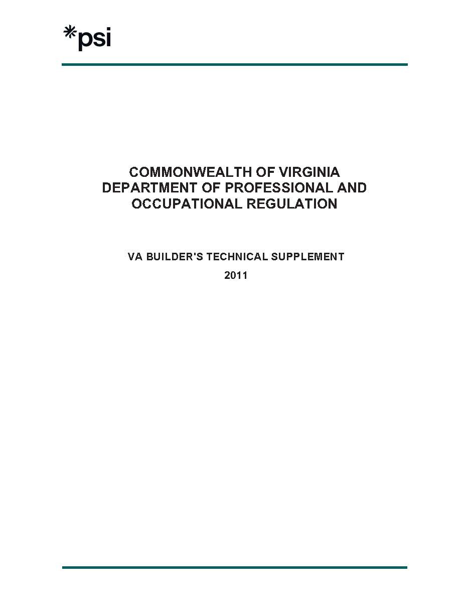 Commonwealth of Virginia Department of Professional and Occupational Regulation - VA Builders Technical Supplement 2011